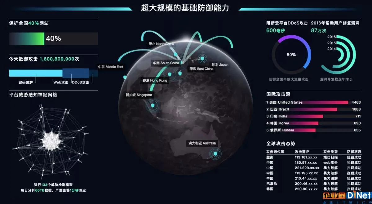 阿里云方面称,目前阿里云承载着中国四成以上的Web网站、移动应用、IT应用,其中包括大量政府客户,各地的基础设施和智慧城市项目等。每日面临大量来自外部黑客的攻击。