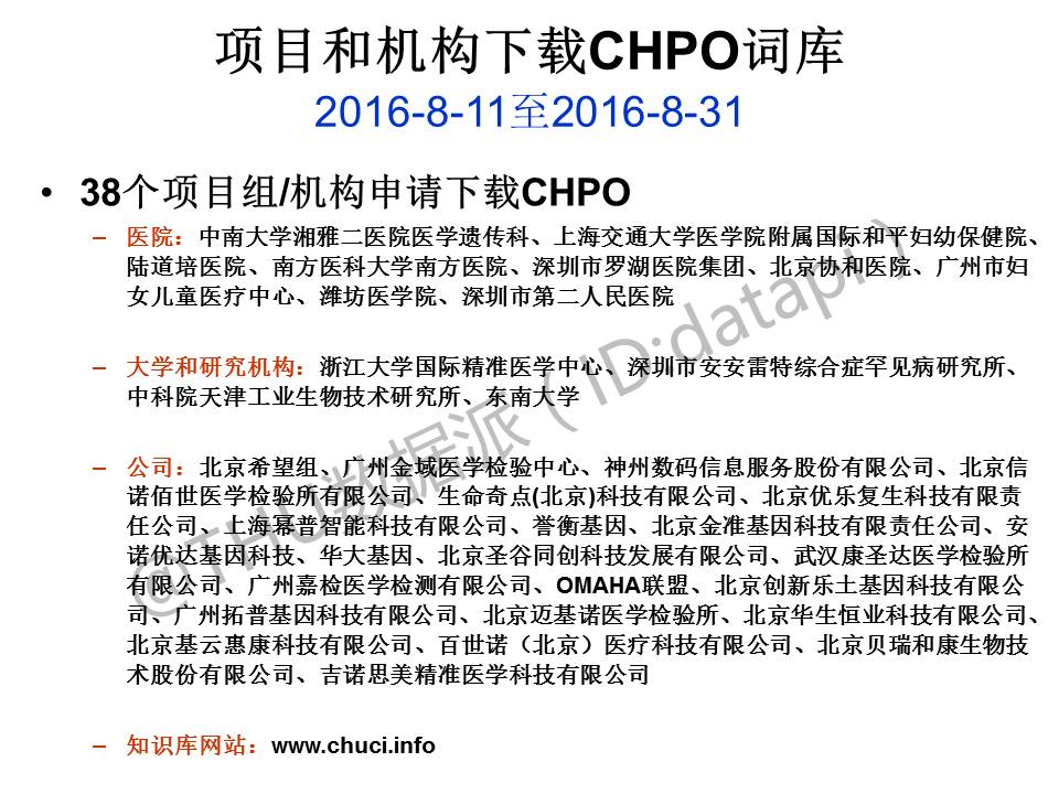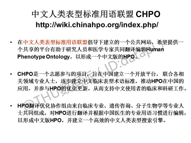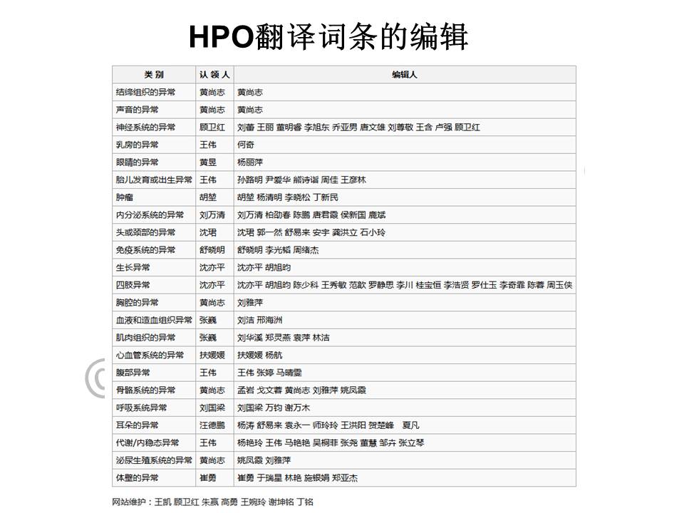 因此,我们成立了CHPO,中文人类表型标准用语联盟,对HPO的词汇进行翻译,并对其词条进行更新,由国内外华人相关专业人士对其进行专业的编辑优化,建立搜索引擎并提供了词库的免费下载。