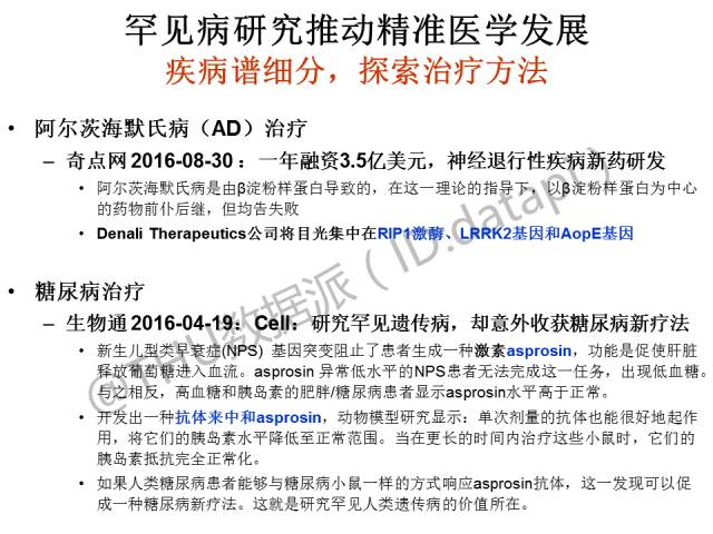 罕见病的研究将推动了精准医学的发展,疾病谱的细分也对新治疗方法的探索有帮助。