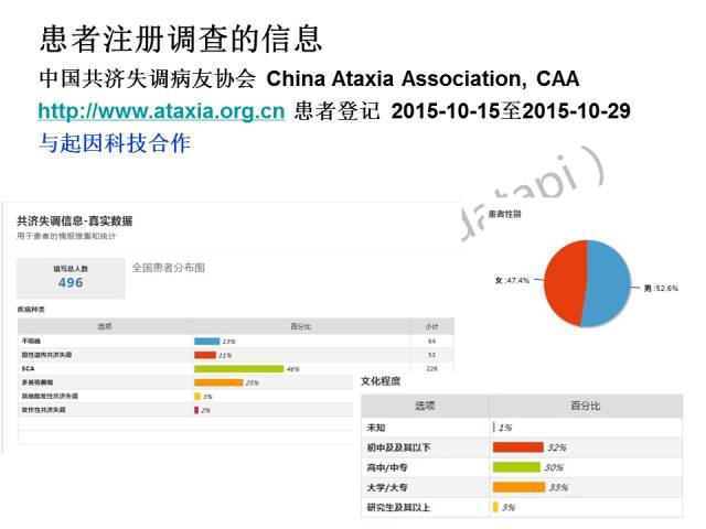 这是我们2009年做的一项探索,我和一些病友建立了中国共济失调病友协会网站,在2015年10月15日至2015年10月29日期间进行了短期的患者登记,调查患者的社会信息和一些医学信息。
