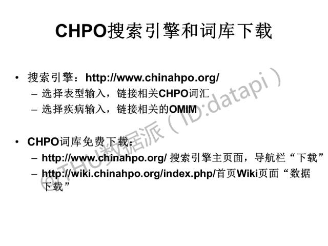 搜索引擎可在输入表型后链接CHPO,输入疾病可链接OMIM和ORPHA;同时,可免费下载词库,现已包含1万多个词条。