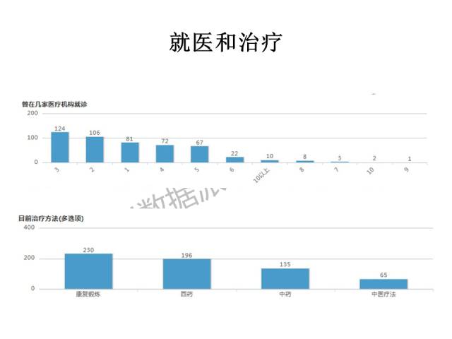 从就医和和治疗上我们可以看出,病人辗转就医的过程非常曲折,治疗方法包括康复锻炼、中药、西药等。