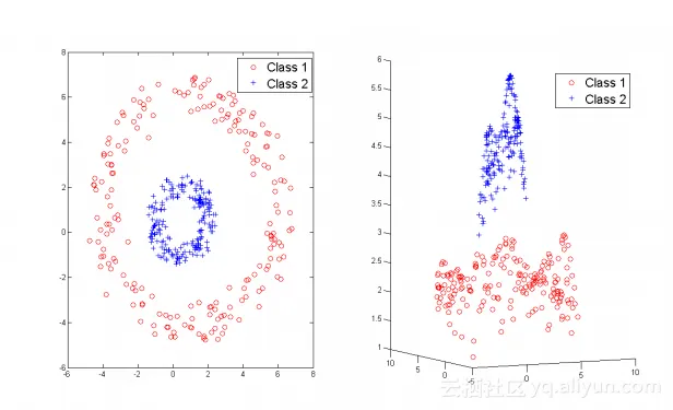 内核是计算两个向量X,Y的点积的一种方法和在某些(可能非常高的维度)特征空间中,这就是为什么内核函数有时被称为“广义点积分”。假设我们有一个映射:φ:Rn→Rm,这使我们的矢量在Rn到某些特征空间Rm。然后数量积X,Y在这个空间里面是 φ(x)Tφ(y)。一个内核是一个函数K相当于数量积:k(x,y)=φ(x)Tφ(y)。内核提供了一种方法来计算某些特征空间中的点积,甚至不知道这个空间是什么。