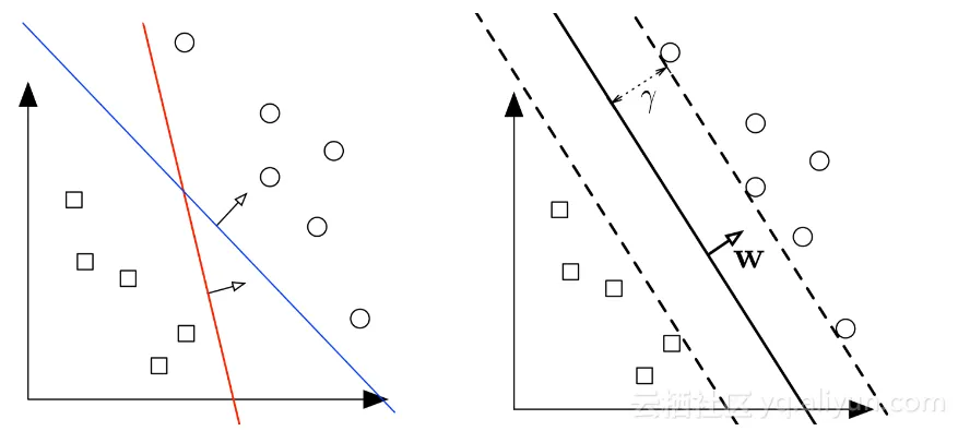假设我们有两类数据,我们要使用SVM进行分类,如图所示: