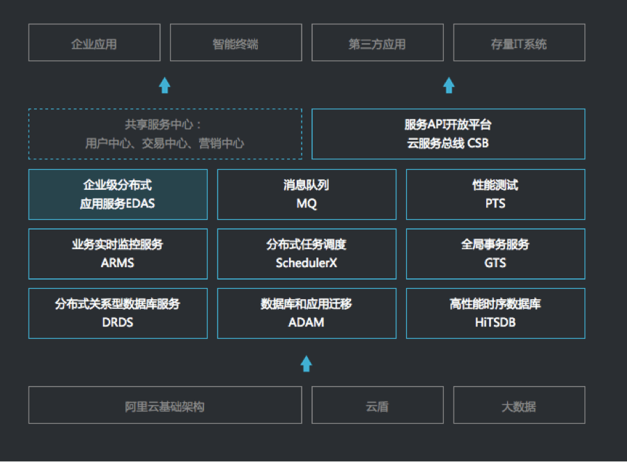 值得一提的是,阿里中间件(Aliware)技术在阿里巴巴集团内部支撑业务范围达到99%以上,外部客户覆盖了政府、税务、人社、银行、保险、石油石化、零售快消、汽车制造、互联网平台等众多行业。经过10年的技术沉淀,目前阿里中间件已经形成了一套成熟的产品体系,分布式关系型数据库服务 DRDS、企业级分布式应用服务 EDAS、消息队列 MQ等已经成为不少企业在分布式互联网架构中必不可少的组件。