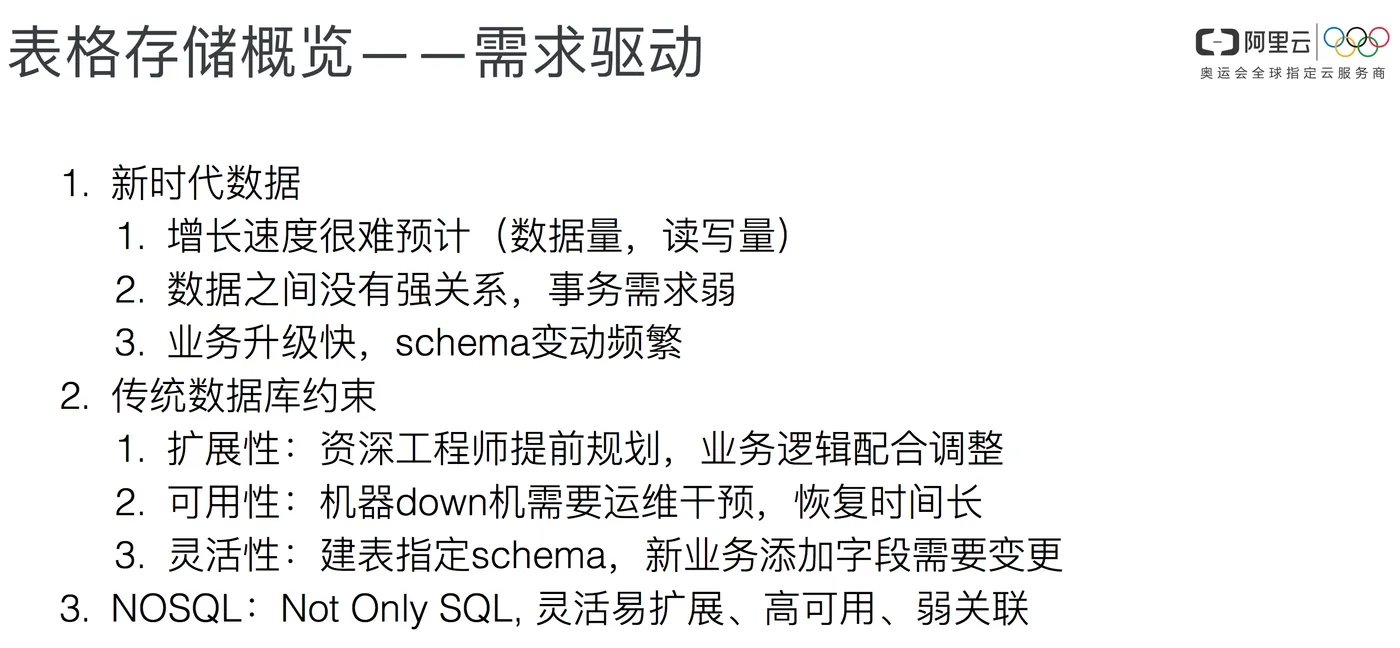 然后介绍了表格存储的功能、生态、架构以及数据模型,有了这些基础才能更好的理解后面的内容。