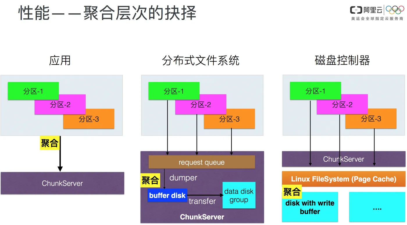 上面说到可用性和性能的权衡,表格存储选择了可用性,而放弃了性能。但是性能显然十分重要,于是我们重新思考了这个问题。BigTable和HBase的核心思想是聚合以减少IOPS,从而提高性能;那么聚合是否一定要做在table这一层呢?是否可以下推做到分布式文件系统层?结论当然是可以,而且效果更好,受益方更多。具体架构见附件里面的说明,我们通过将聚合下推到文件系统、RPC层小包聚合、Pipeline传输等大幅改进了性能,在可用性和性能之间取得了很好的平衡。