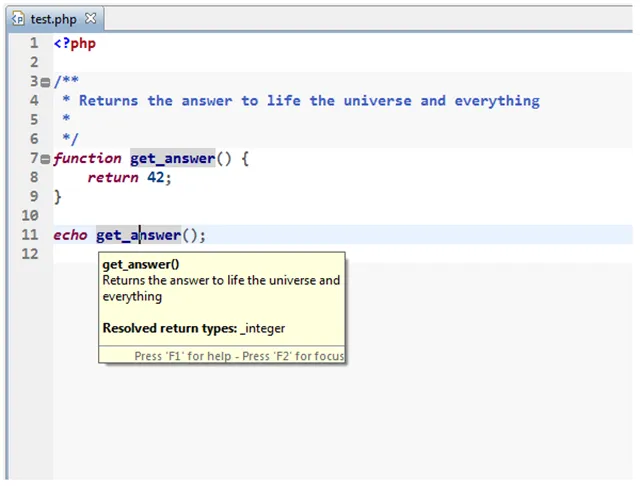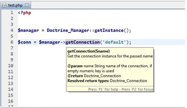 在这些示例中,注释(或文档)的类型是基于 PHPDoc 的,使用的 IDE 是 Aptana。