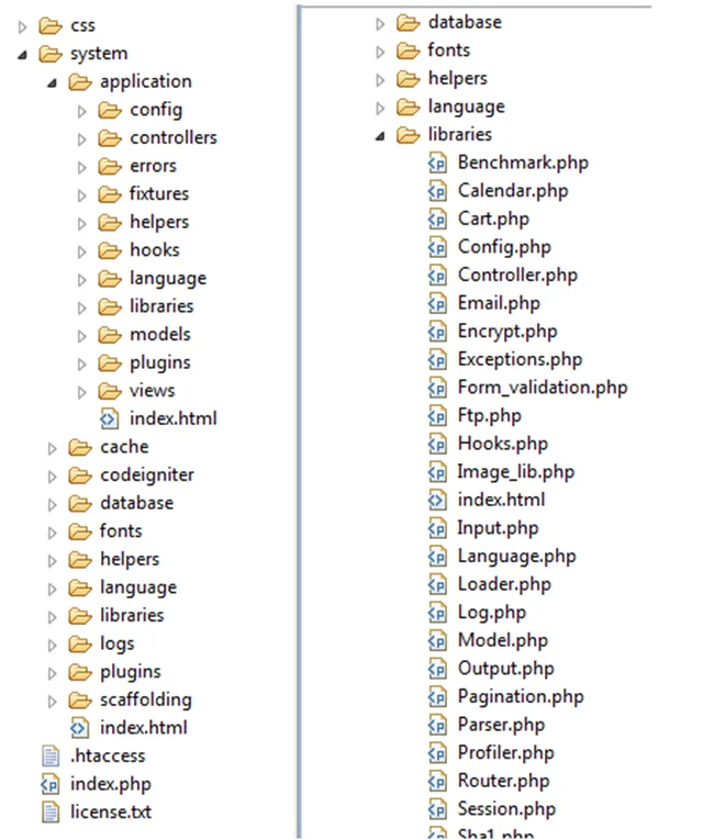 最好的方法之一就是使用框架或者模拟其文件夹结构。下面是 CodeIgniter 的代码布局: