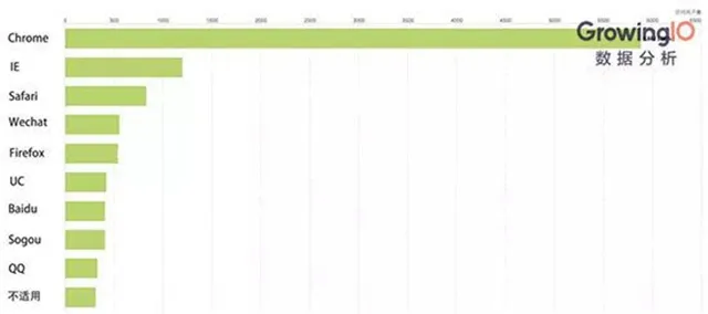 条形图清晰展示了用户在不同类别上的频数,并且按照数量从大到小排序。上图展示的是某产品用户使用浏览器的频数分布,在资源有限的情况下产品可以先适配 Chrome 和 IE 浏览器以提升绝大部分用户体验。