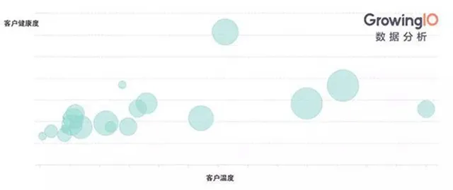 下面介绍的是气泡图,气泡图用来展示一个事件与多个维度之间的关系,如分析 B 端产品客户成单周期与客户活跃度、登录账号数量之间的关系。