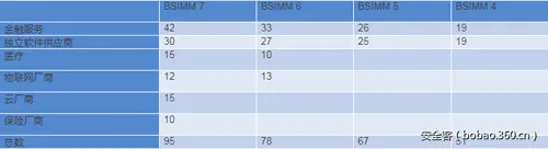 加入BSIMM社区(参与BSIMM评估)厂商的详细分布数据如下表所示: