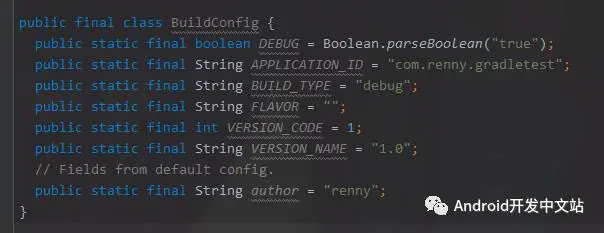 虽然BuildConfig.DEBUG字段就可以判断,但我们可以用buildConfigField向代码中传递自定义的值,比如不同构建包需要不同Host开头的api地址,不同的https证书路径等,用法为: