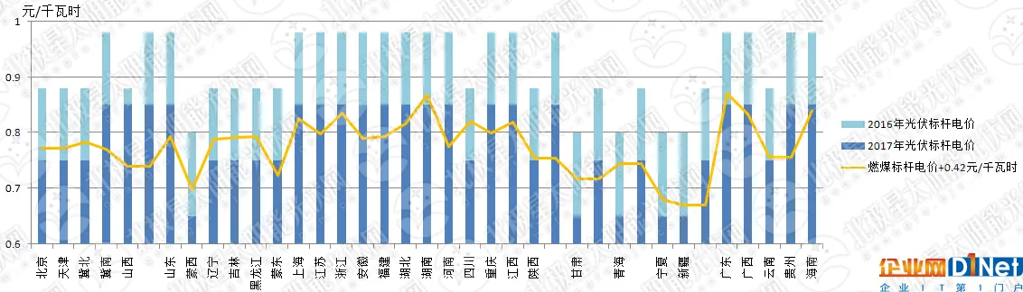 光伏电价方面,大型光伏电站从2011年开始一直实施标杆电价,分布式光伏从2013年开始实施度电补贴机制,当然分布式光伏可以在两种模式中进行选择,一种自发自用、余量上网模式,全部电价补贴0.42元/千瓦时;第二种是全额上网模式,光伏标杆电价(与集中电站电价和补贴发放管理模式完全一致);两种模式在项目投运时任选其一,其后可以单向调整(余量上网转向全额上网)一次。