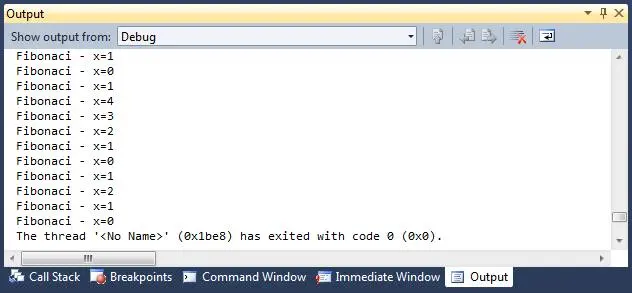 以上程序中,我们使用Console.WriteLine() 输出针对特定输入值生成的最终斐波那契数列。如果希望在调试器里观察操作中每一次递归运算后的数列而又不实际中断程序运行,该怎么办呢?“跟踪点”可以轻松实现。
