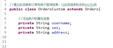 为了将查询结果映射到pojo中,pojo必须包括所有查询列名。在原始orders对象不能接受所有查询字段的时候,定义OrdersCustom来进行扩展字段。