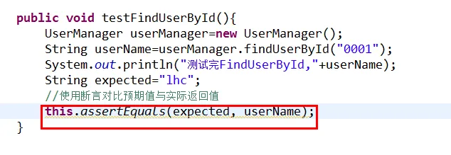 对于存在返回值的方法,我们可以进行预测值与实际值的比较,来作为测试是否通过的另一个判断步骤。
