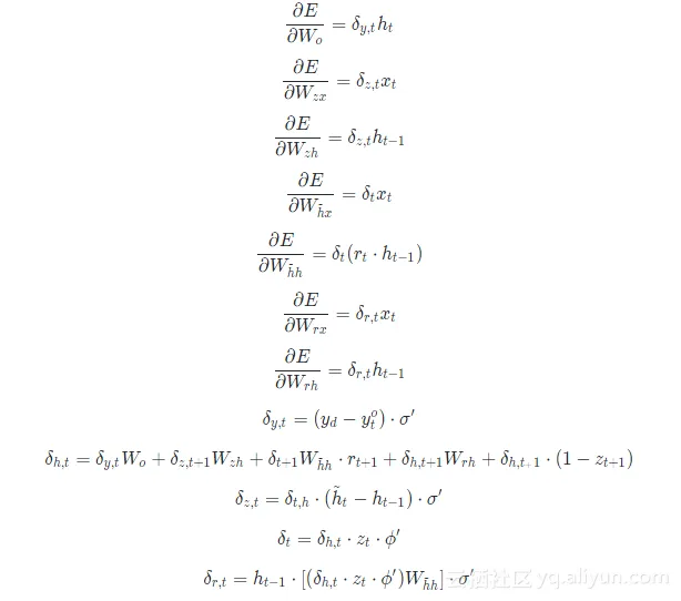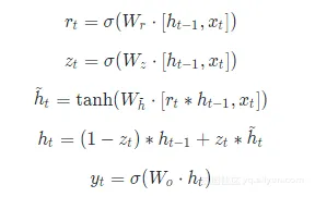 根据前面GRU模型图来一步步看他是怎么向前传播的,根据图不难得到以下式子: