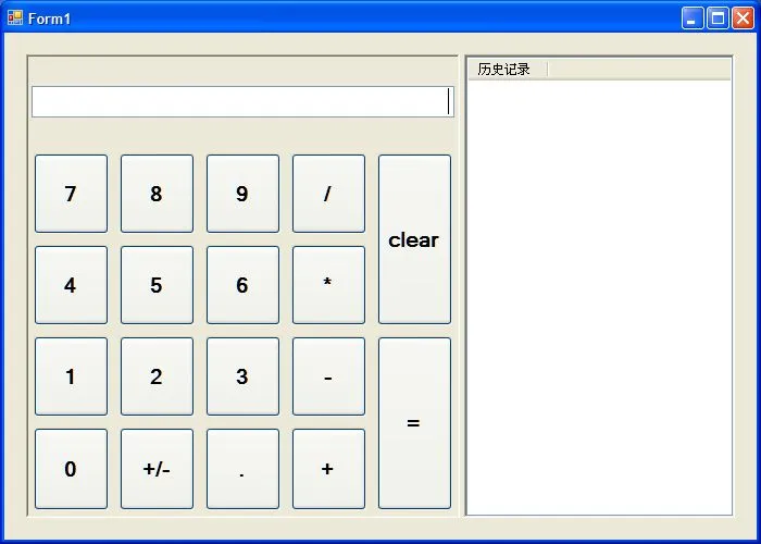 完成以上步骤后,您就会得到一个使用 Windows 窗体设计器中提供的多个布局功能组装起来的自定义控件。 此控件实现的是一个简单计算器的用户界面 (UI)。 下面的屏幕快照显示该计算器控件的常规布局。