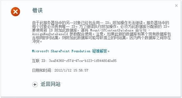 但是,这个会遇到问题,如果在同一台数据库服务器上,这么操作修改内容数据库的时候会提示id重复(如下图错误),所以建议迁移的时候使用这种方式。