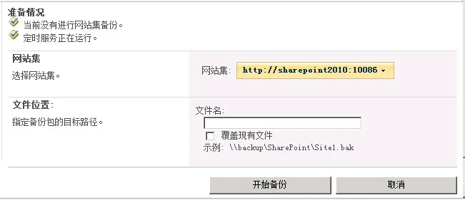 自己首先尝试了下备份:管理中心 – 备份和还原 – 颗粒备份 – 执行网站集备份,文件名直接填写物理路径就可以了,e.m:C:\beifen.bak 下图
