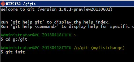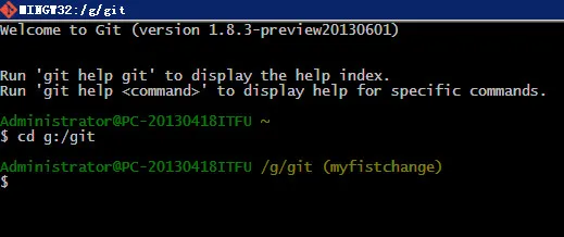 然后进入到你本地的git工作文件夹下,便便放在G:/git