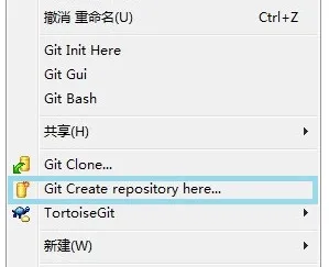 如果上面的.git文件夹没有建立,先到G:/git文件夹,右键文件夹,然后Git Create....