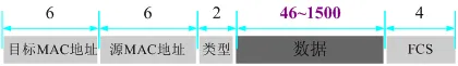 以太网发展到现在,有很多种类型,不同类型的帧具有不同的格式和MTU值,甚至同种物理媒体上都可同时存在[2]。如Ethernet II(ARPA)、Ethernet 802.3 raw(Novell Ethernet)、Ethernet 802.3 SAP、Ethernet 802.3 SNAP、。本文只介绍最常用的以太网帧Ethernet II,其格式如下: