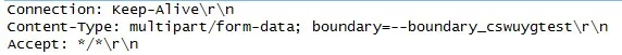 POST表单最重要的是了解表单的格式。首先要在头域增加Content-Type说明,如:“content-type:multipart/from-data; boundary=--cswuyg”。然后http body填充的数据要以MIME格式上传,每部分数据的开头都是由“--”+boundary开始的,结尾以"--"+boundary+"--"结束。