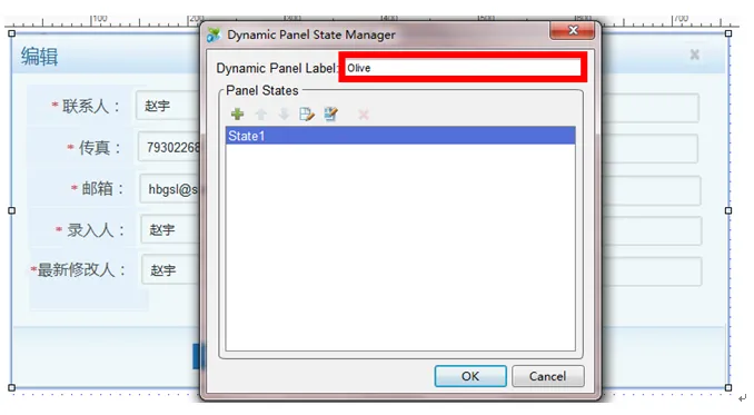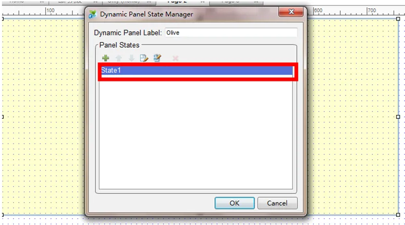 图中有一个State1的列表项,该列表项主要是为了显示动态面板的状态,点击F2可以为该项重命名,不命名也可以,直接双击进入。