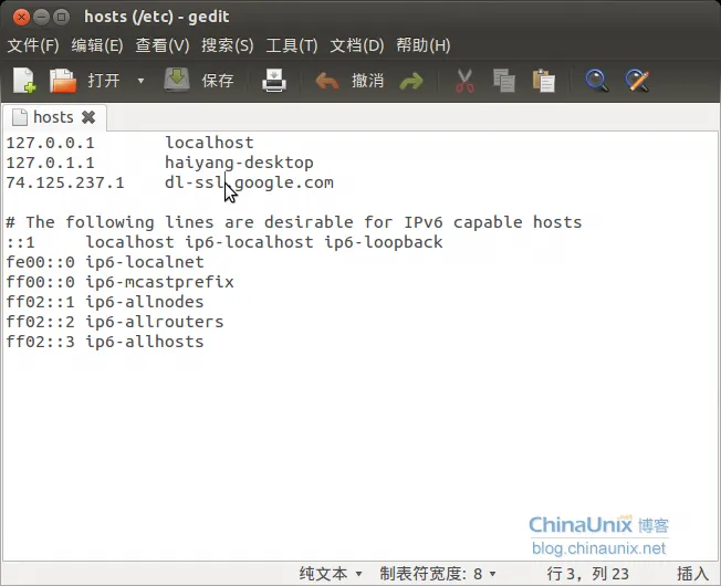 以我的hosts文件为例,更改之后应该是这个样子:
