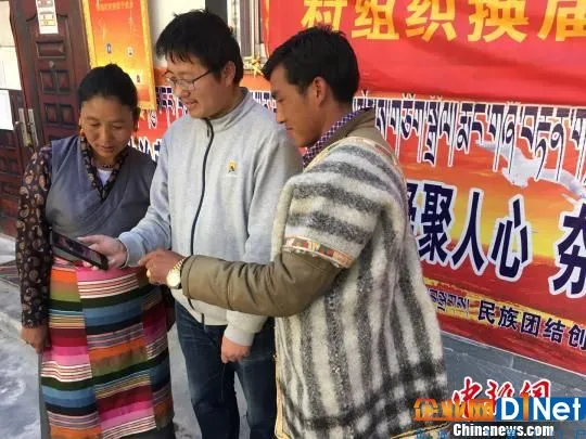 “双十一”网购节,西藏自治区文化厅驻村干部通过移动终端支付帮助边境地区夏尔巴群众网购棉被。