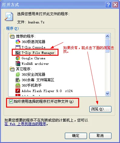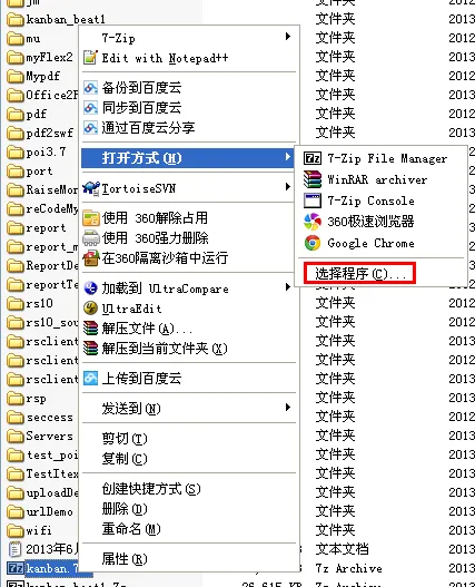 1.随便找到一个7z后缀,然后右键,选择打开方式为7z
