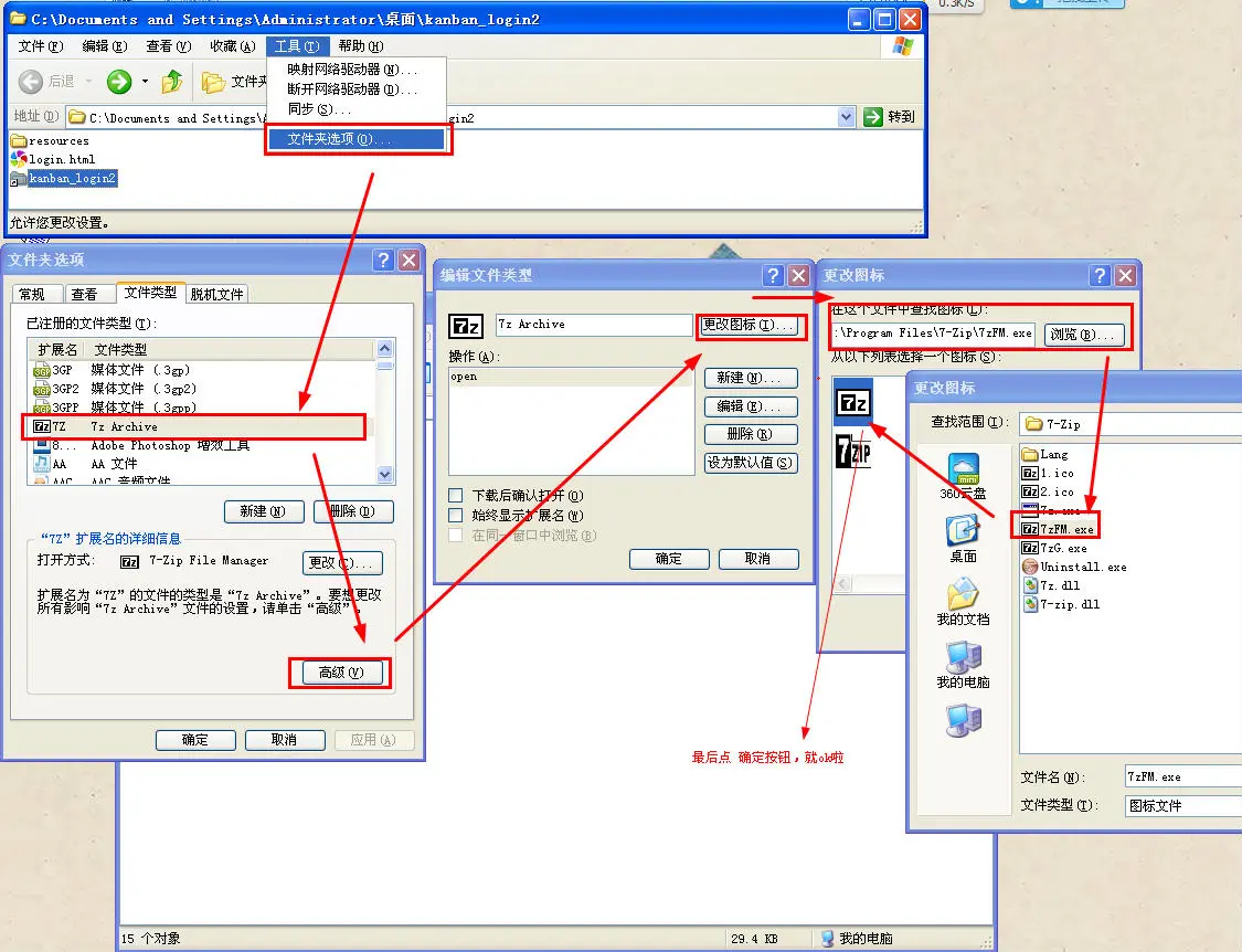 2.然后随便打开一个文件夹,点击工具--文件夹选项--文件类型--找到7zip的格式,然后选择高级,之后,看截图。