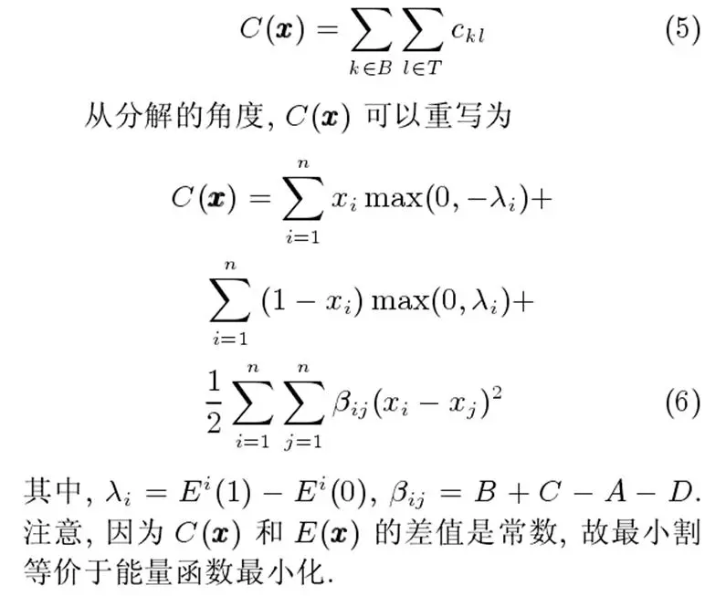 参考文献[7]中证明了,最小割等价于能量函数最小化: