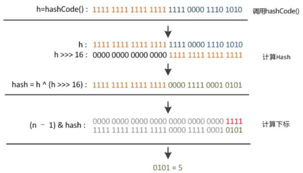 // h ^ (h >>> 16) 为第二步 高位参与运算