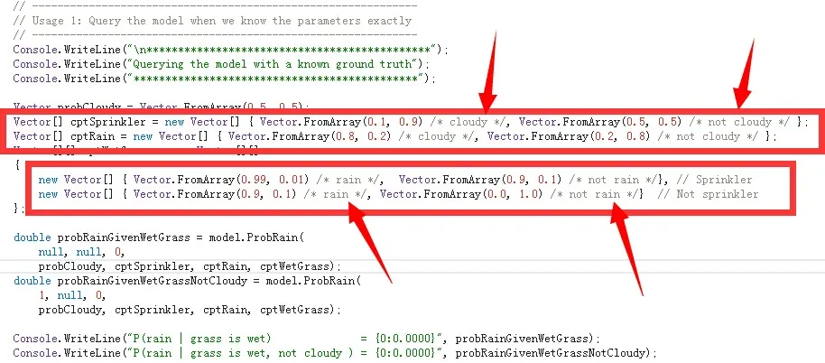 第一段代码来自微软剑桥研究院,是Infer.NET的一个Demo代码
