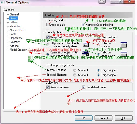 选中对象模型,单击鼠标右键,选择Properties菜单,就能够打开上图,上图为PDM的模型属性窗口,在其中可以对标题,代码,规则,标识符等属性进行设置