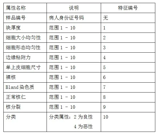 本文在转换数据后,首先进行了预处理,由于本文的数据范围都是1-10,因此不需要归一化,但是数据样本中存在一些不完整,会影响实际的程序运行,经过程序处理,将这一部分数据删除。这些不完整的数据都是由于实际中一些原因没有登记或者遗失的,以“?”的形式代表。