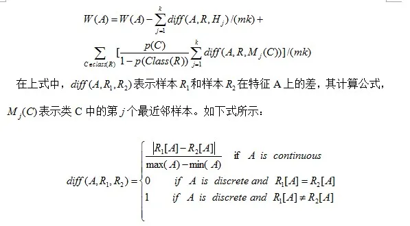 Relief为一系列算法,它包括最早提出的Relief以及后来拓展的ReliefF和RReliefF,其中RReliefF算法是针对目标属性为连续值的回归问题提出的,下面仅介绍一下针对分类问题的Relief和ReliefF算法。