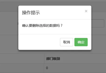 $("#btn_delete").click(function () { var arrselections = $("#tb_departments").bootstrapTable('getSelections'); if (arrselections.length <= 0) { toastr.warning('请选择有效数据'); return; } bootbox.alert("确认删除", function () { var strResult = ""; }) bootbox.prompt("确认删除", function (result) { var strResult = result; }) bootbox.confirm("确认删除", function (result) { var strResult = result; }) });