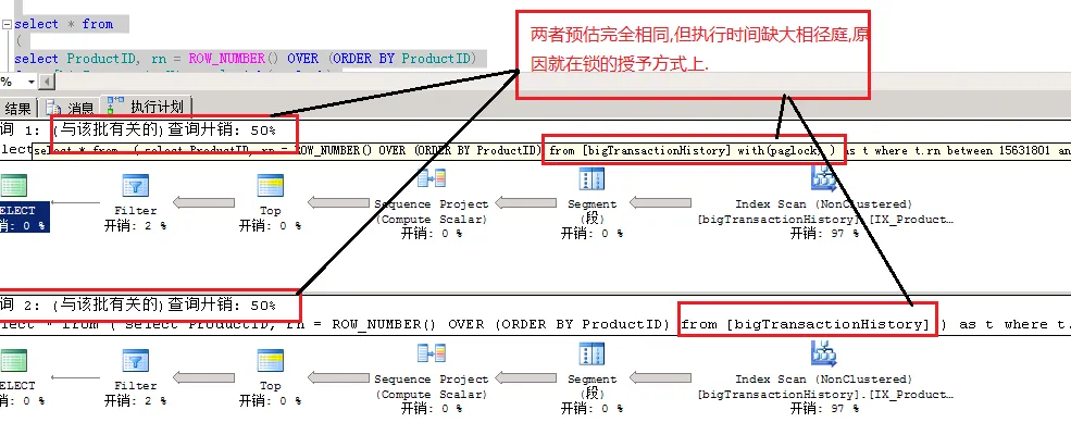 ,而且CPU时间与占用时间相差无几,排除了阻塞之类的因素后我们把消耗定位在这个查询本身上.这时提一个Row_number()的特点,它可在万千数据中将其序列化让我们找到我们想要的精确数据点,但就此默认的实现方式上是为每一行数据都加一个行锁.