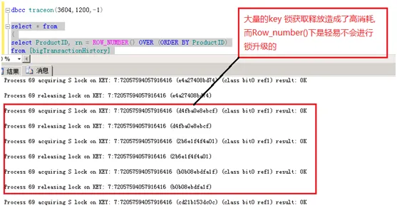 我们开启Trace Flag 1200再次执行语句捕捉下执行时的锁.可以看到Row_number()在实现上未进行锁升级如图1-2