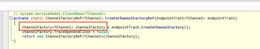 上面的两幅图,你会发现,最后的proxy类是通过ChannelFactory<TChannel>类来完成助攻的,那话说回来了,既然底层用了ChannelFactory<TChannel>,
