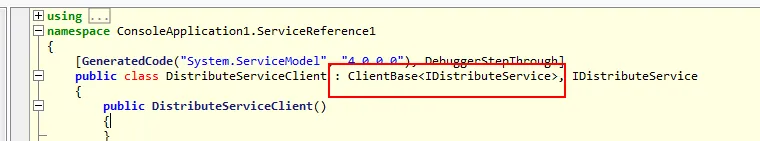 就像上一节那样,如果我用“服务引用”的话,vs会偷偷的用svcutil.exe来给我们生成一个proxy类和一个config文件,proxy类也就是你看到的xxxclient。。。