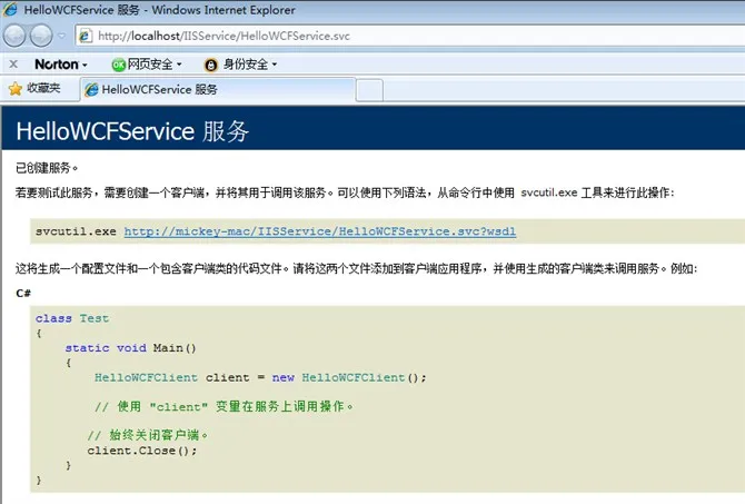 我们先看一个例子,就是我们在前几篇中建立的IIS服务HelloWCFService,它被我寄宿在IIS中。