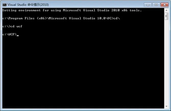 看到系统提示的那行命令了么?系统在告诉我们如何使用svcutil.exe来获得元数据。我们现在试一下,首先打开VS2010命令行: