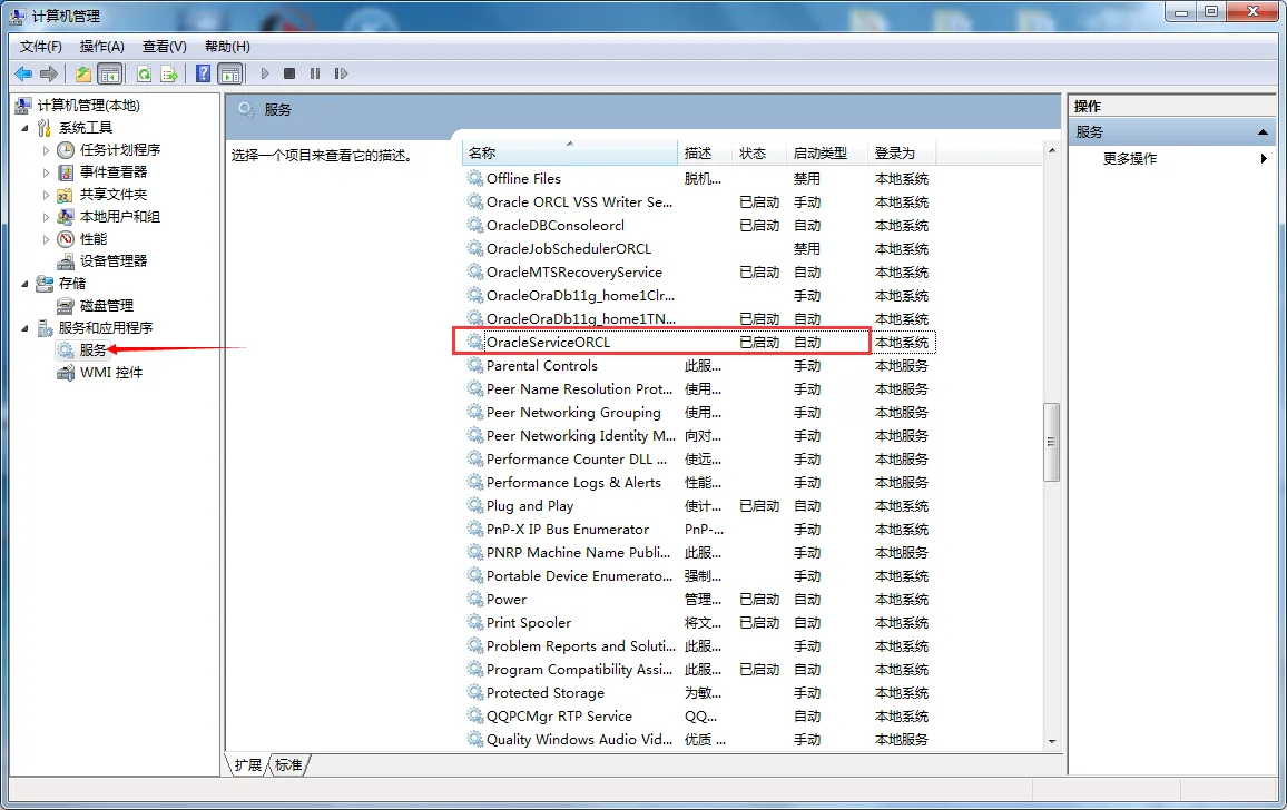 注意查看此时本机开启的服务,一定要确保服务OracleServiceORCL已启动。