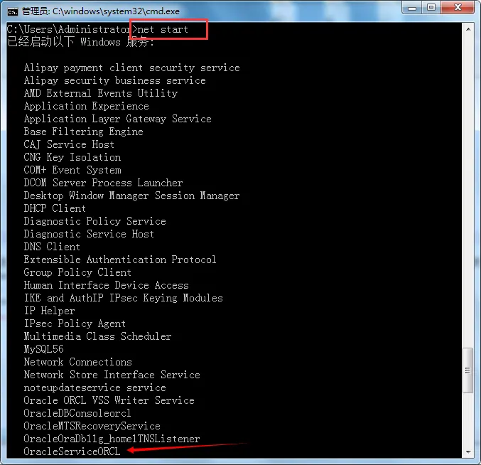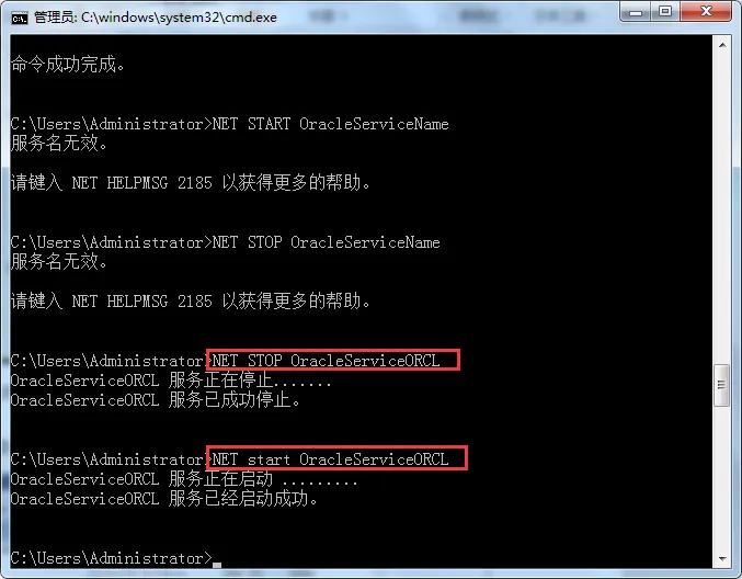 通过cmd进入控制台也可以启动或关闭Oracle服务