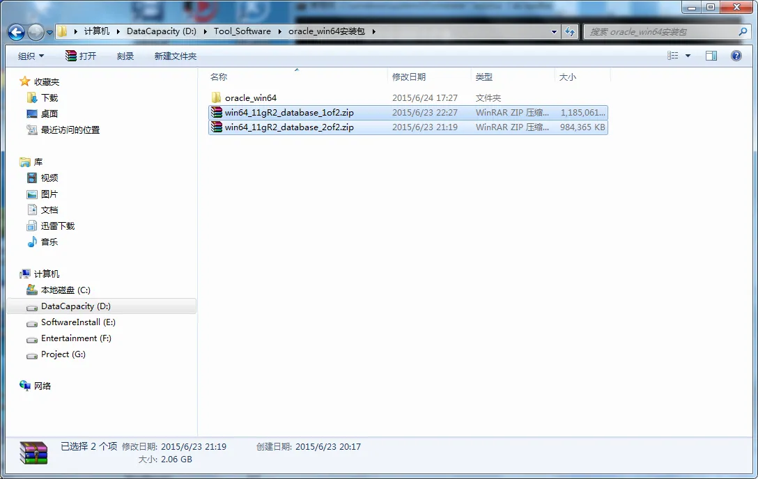 Step1 下载oracle压缩包并解压到同一文件夹下面
